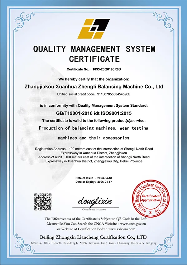 Компания Zhangjiakou Xuanhua Zhengli Balancing Machine Company была основана в 1999 году в Сюаньхуа, известном промышленном городе на севере Китая, который превратился во вторую по величине в стране базу производства балансировочных станков и оборудования для испытаний на износ. Наш ассортимент продукции включает восемь основных серий с более чем тридцатью спецификациями балансировочных станков, поддерживаемых гибкими системами анализа вибрации и динамической балансировки серии ZL. Помимо производства балансировочного оборудования и систем тестирования на износ, мы предоставляем услуги по обучению, техническому обслуживанию, модернизации и усовершенствованию систем для поддержки клиентов в долгосрочной перспективе. На сегодняшний день мы сотрудничаем с более чем 5300 клиентами, и наша продукция экспортируется на рынки Казахстана, Туниса, Северной Кореи, России и Дубая, где она признана за свою надежность и производительность.